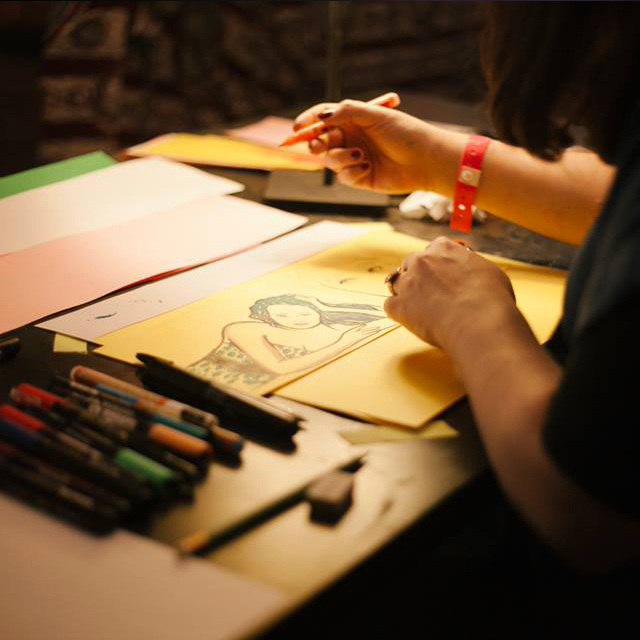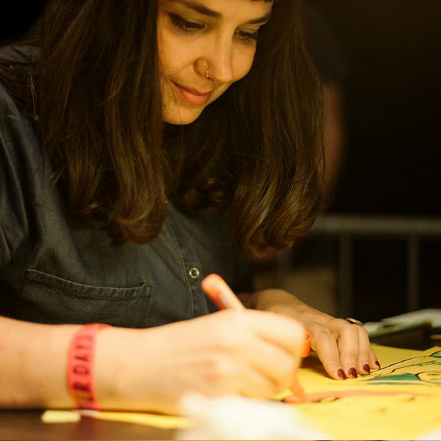 Francesca loves to do live-drawings or graphic recordings for professional events: festivals, concerts, private views, seminars, meetings, PR events, and clients or partners portraits. She’s performing “live” using graphic tablets, posca, acrylic painting or hand made line drawings.