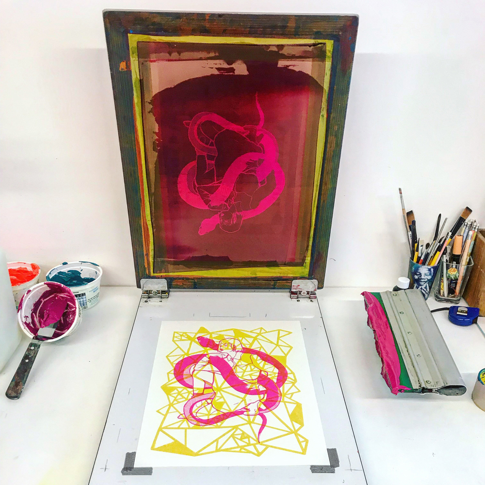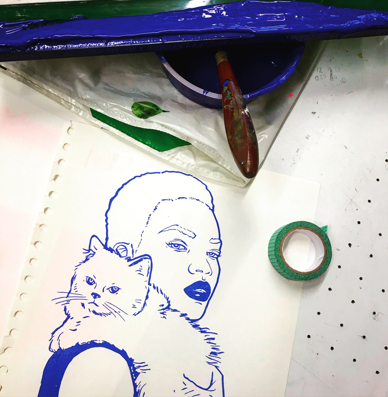 Silkscreen Studio Tiger Milk Wild blue Mme Snake Blue Cat-Girl Red Lucrezia Wild Red Kahlo Mask Posted in personal workTagged print, silkscreen