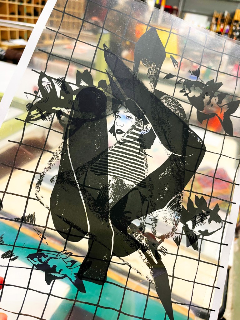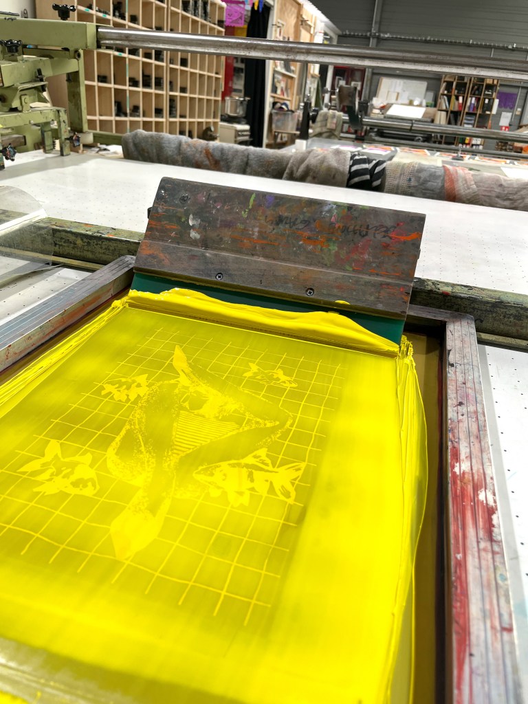A selection of illustrated posters printed using screen printing.